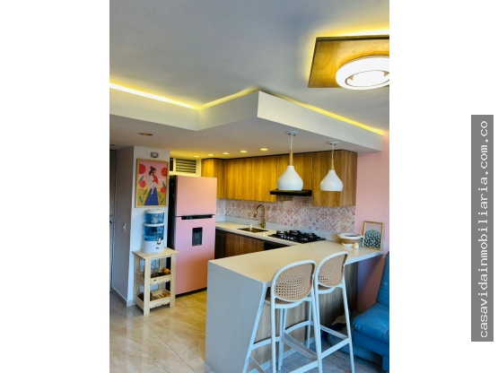 Área 55 mt2, 3 alcobas, principal con vestoer, 1 baños cabinado, sala comedor, cocina integral, zona de ropas independiente, balcón, parqueaderos comunes. ACABDOS DE LUJO.